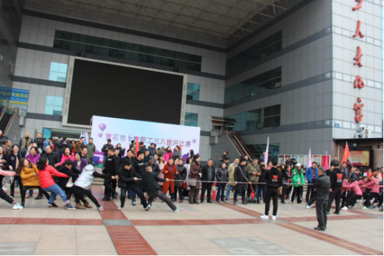 3月8日,春意盎然,阳光明媚,黄石市教育局、教育工会在市文化宫广场举行庆“三八”全市教育系统女教职工拔河比赛活动。此次比赛共有来自各县(市)区、直属学校的28个队336名教职工参加。本次活动旨在传播“快乐工作、健康生活”的人生的理念,丰富我市女教职工的文体生活,展现女教职工团结协作文明向上的精神风貌,促进女教职工身心健康发展。在激烈的角逐比赛后,最终黄石体校和湖北师范大学分获直属组和非直属组第一名。市总工会党组书记、常务副主席罗应中,市教育局党组成员、副局长徐可,市总工会党组成员、教育工会主席邱慧敏同志参加活动并为获奖队伍颁奖。本次活动由市教育局机关工会主席李咏梅主持。