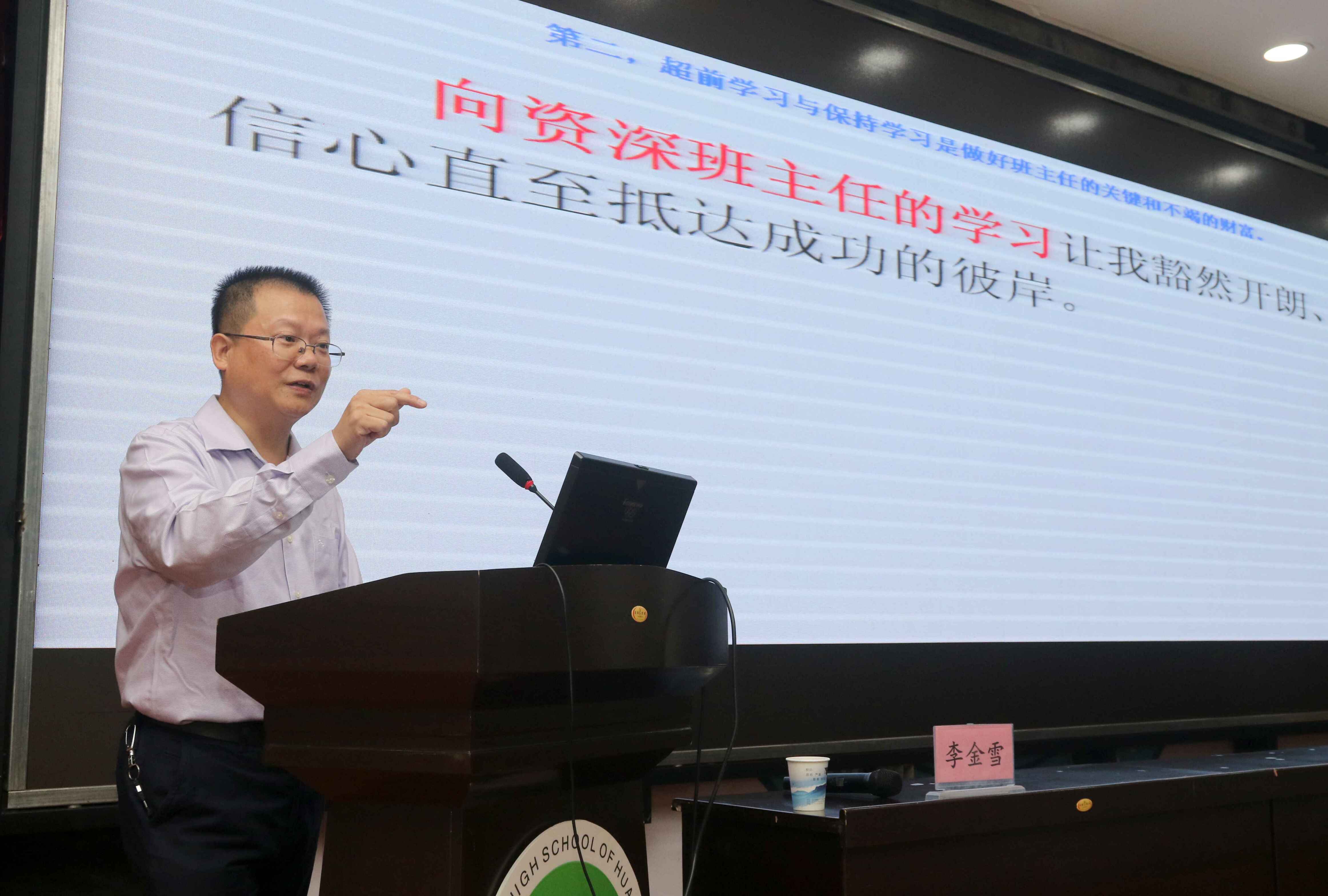 怎样做好一名班主任,黄石名师、黄石二中教师李金雪介绍了他的班主任工作经验,超前自主学习、专业书籍学习、科任老师学习、还要向资深班主任学习。