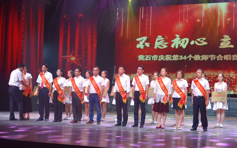 大会对荣获“尊师重教先进个人”“尊师重教先进集体”“黄石名师(名校长)”“名师工作室”“最美乡村教师”“最美教师”“最美教师团队”的个人和集体进行了颁奖,并播放了我市教育发展专题片《奋进之笔》,上演了《不忘初心》《共筑中国梦》等节目。