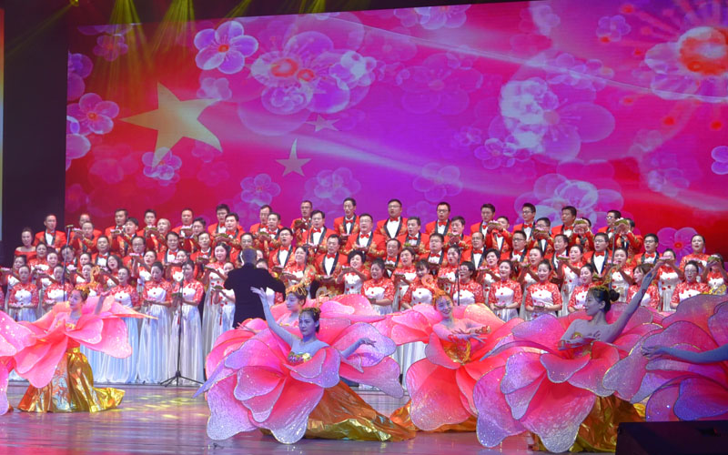 “万水千山不忘来时路,鲜血浇灌出花开的国度……”由全体局班子成员,8所直属学校的书记、校长和老师代表们组成的市教育局代表队,唱响音乐会的主题曲《不忘初心》,同时也拉开了大会的序幕。