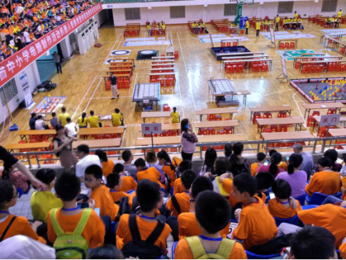 图为我市选手在湖北省2018年中小学电脑制作活动机器人竞赛现场比赛