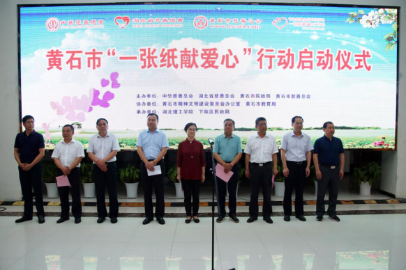 5月30日上午,由黄石市民政局、黄石市文明办、黄石市教育局、黄石市慈善总会共同倡导的 “一张纸献爱心”行动启动仪式在湖北理工学院举行,市教育局副局长周汉桥出席启动式,市直属学校和各城区中小学代表一百多人齐聚现场,大家纷纷将各校募集的废旧衣物、报刊纸张等投入到捐赠箱中。