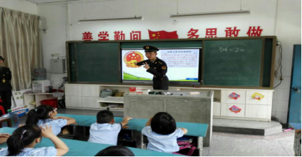 沈家营小学等部分学校还联合在黄高校国旗班志愿者,组织了“向国旗敬礼,谱爱国赞歌,争当强国好少年”活动,邀请志愿者们示范升旗仪式。志愿者们饱满的精神,笔挺的英姿,利落的动作,标准的军礼,严明的纪律,将对祖国的敬意蕴藏在升旗仪式的每一个细节之中,无声中给了学生们爱国主义教育。为了让学生们深刻感受到祖国的发展变化,增强民族自豪感,志愿者们走进班级,给学生们上了一节主题队会课,讲授了国旗的基本知识、如何爱护国旗以及国徽的知识、国徽所代表寓意,带领同学们齐唱国歌,观看国防的相关视频,激发学生们热爱祖国、祝福祖国之情,引导中小学生用中国梦引领人生航向、为实现中国梦奋发学习、树立健康向上的人生信念。