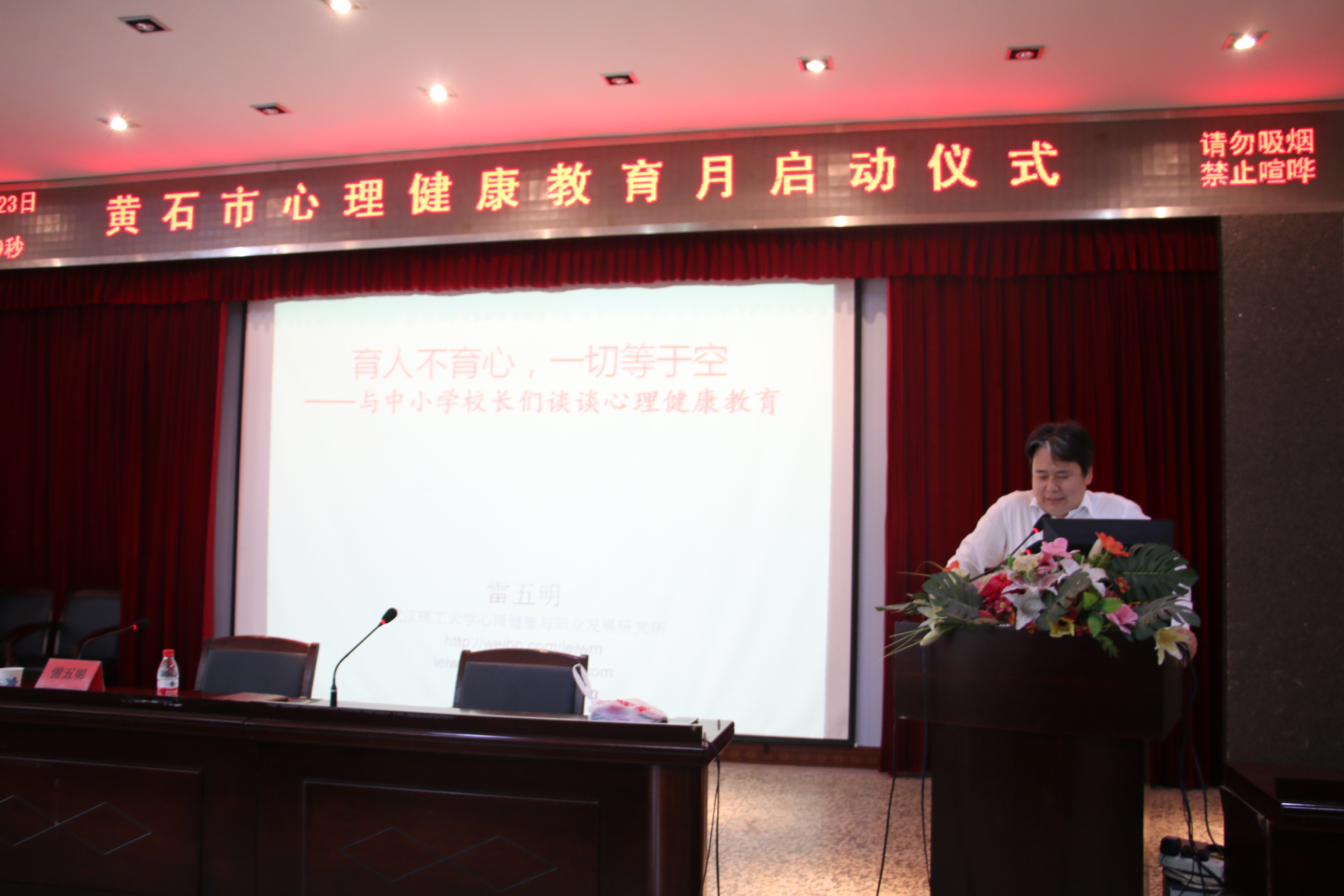 本次活动邀请黄石三中专职心理教师董湘娥为参会教师上高中学生心理健康辅导示范课。并特邀武汉理工大学雷五明教授以“中小学如何做好心理健康教育”为题做专场讲座。