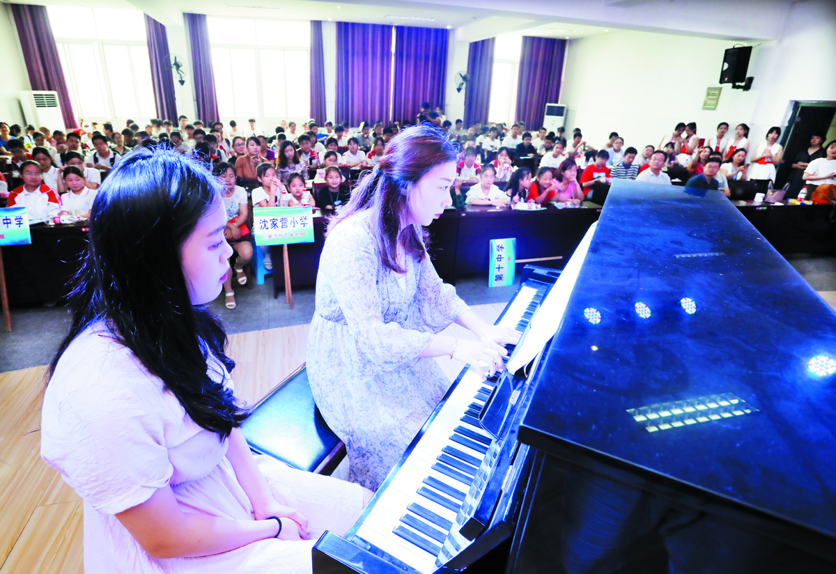 当天,200多名中小学生来到美丽的黄石女子艺校。徜徉校园,感受环境的幽雅宜人;参观展室,体验灵巧的手工和绘画之美;注目舞台,领略学生精彩的文艺表演;驻足琴房,观摩高效的“一对一”授课方式。