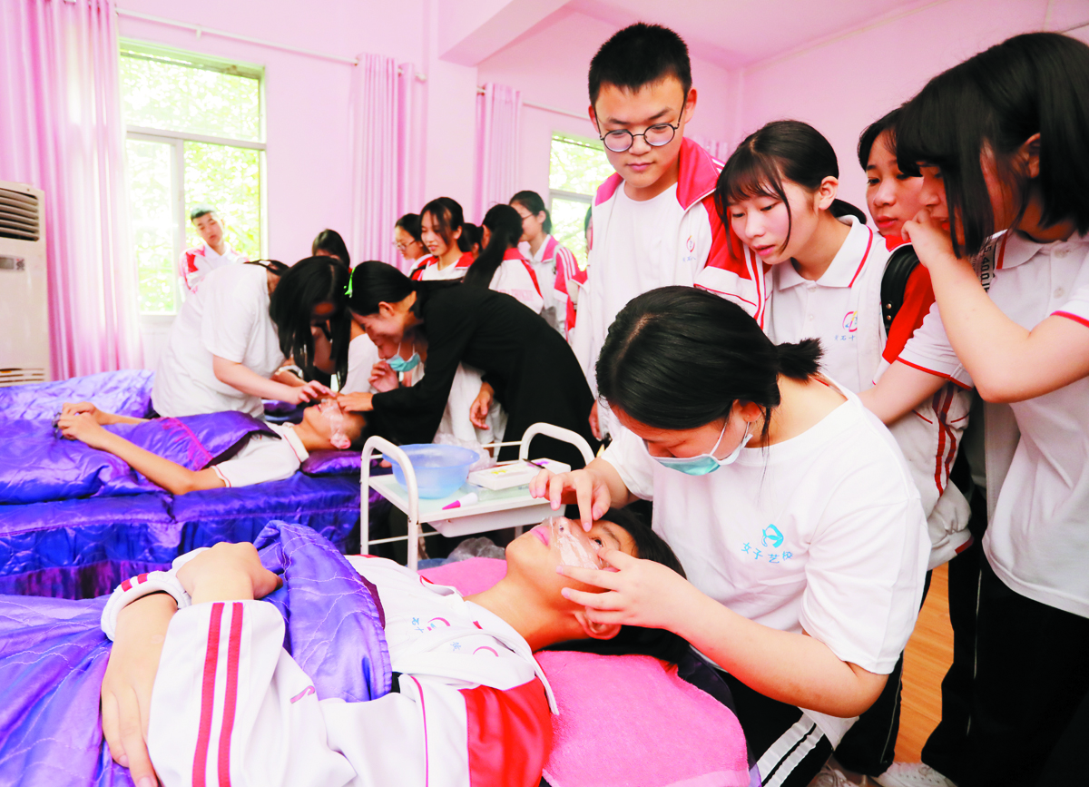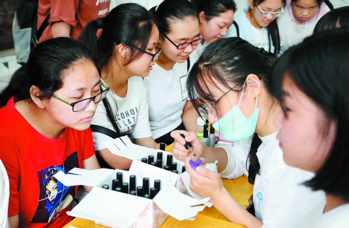 在黄石女子艺校美妆和美甲体验区,不少学生上前感受生活妆、彩妆给自己带来的美丽改变。