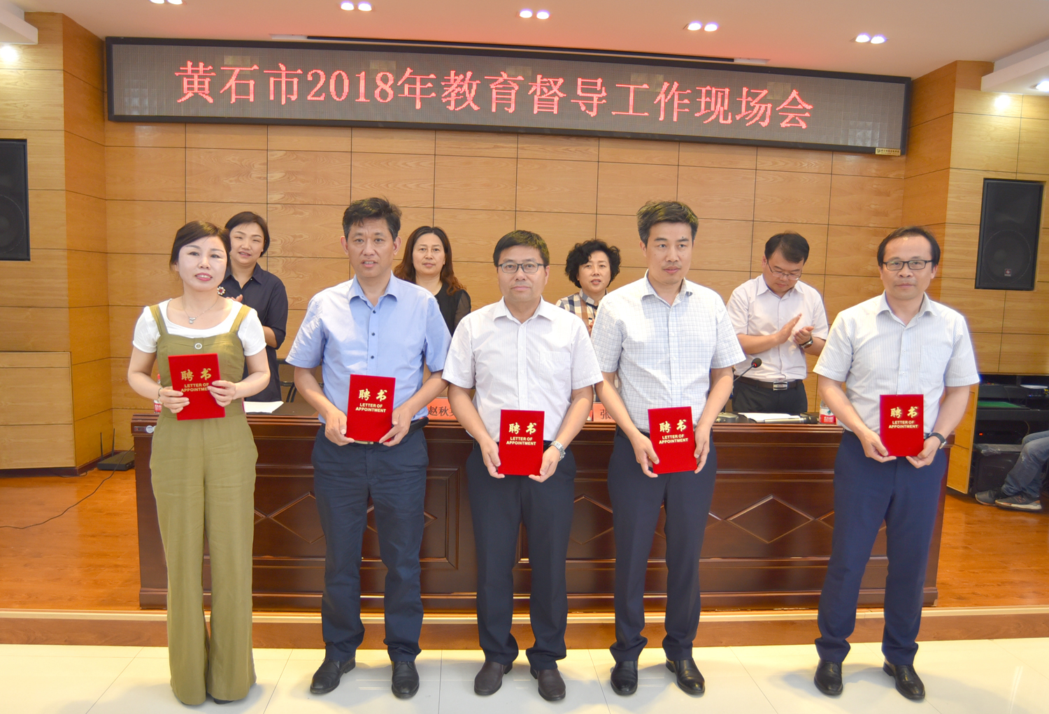 现场会的第二个环节是教育督导工作部署推进会,会议由市教育局副局长邱治国主持,会上为市直属学校责任督学、市教育督导专家颁发了聘书。市政府教育督导室副主任周燕霞回顾了我市2017年教育督导工作取得的成绩,针对存在的问题对2018年督导工作从健全工作机制、加大督政力度、强化评估监测三个方面部署了10项重点工作任务,要求各级教育督导部门切实履行督政、督学、评估监测各项职责,为黄石市加快实现教育现代化发挥监督保障作用。