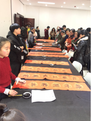 本次活动共收到城区中小学生作品400余幅,评选出60幅获奖作品展出,组委会邀请了十名荣获一等奖的学生在开幕式现场书写春联,并且由五位书法家当场点评,收效良好。