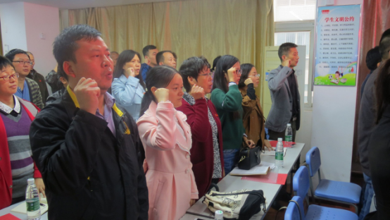 会上,党员同志们如期缴纳当月党费、齐唱国歌、重温入党誓词、集体诵读党章,市教育局党组成员、副局长周汉桥同志代表市教育局与师院社区签订双向服务责任清单。