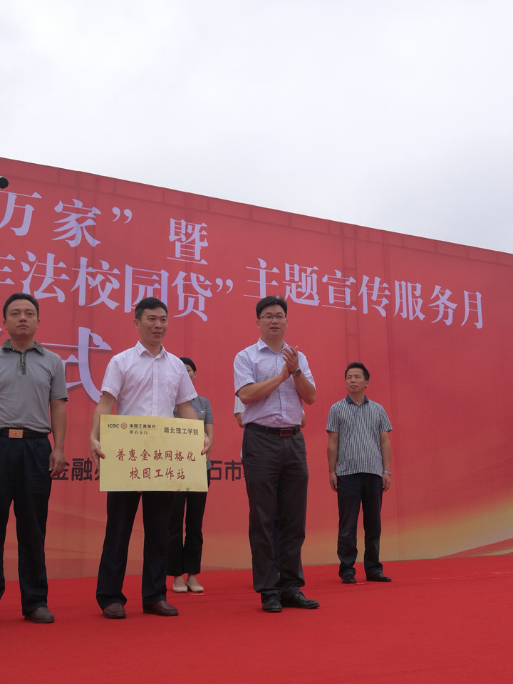 9月21日上午,市银监分局、市金融办、市教育局联合在湖北理工学院正式启动2017年黄石市“金融知识进万家”暨防范和打击高校“非法校园贷”主题宣传服务月活动。市教育局党组成员、副局长徐可参加了启动仪式,并为工行湖北理工学院金融服务网格化工作站授牌。