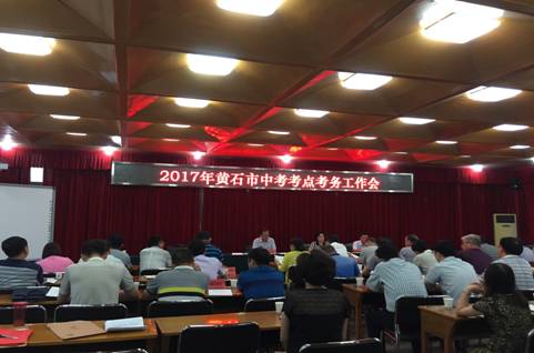 2017年6月9日上午,黄石市中考考点考务工作会在市教育局九楼召开。各县(市)区教育局负责人、黄石二中等七所城区考点的主副考、纪检委员、考务人员以及大冶市、阳新县招办、市教育考试院参加了此次会议,市教育局党组书记、局长张足意,市纪委派驻市教育局纪检组组长赵忠林,市教育局副局长周学君出席了会议。