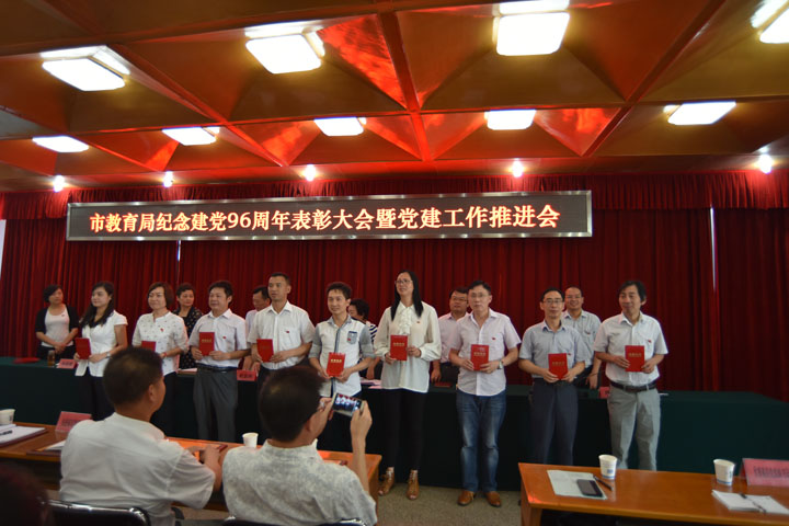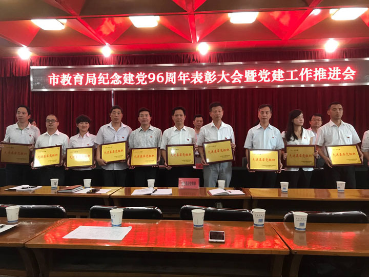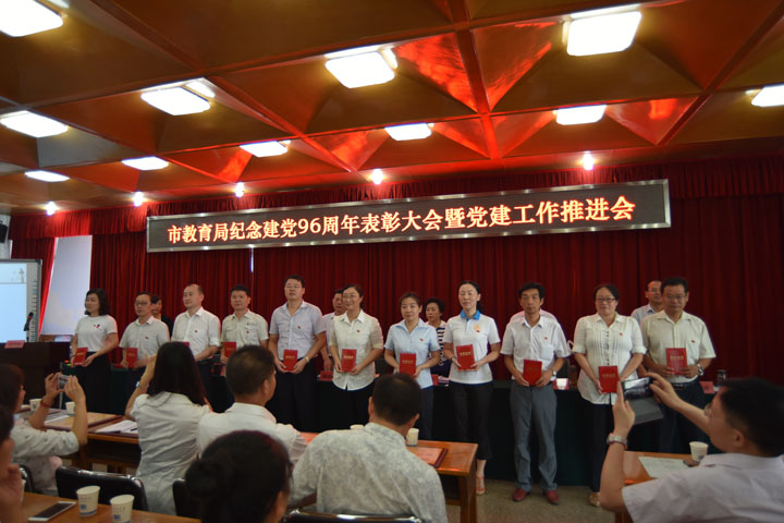 6月29日上午,市教育局纪念建党96周年表彰大会暨党建工作推进会隆重举行。108名党员同志在庄严的国旗下共唱国歌,重温入党誓词。