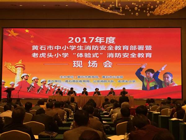 3月29日上午,2017年全市中小学生消防安全教育部署暨老虎头小学“体验式”消防安全教育现场会在黄石港区胜利召开本次现场会共分为两个部分,一是老虎头小学消防体验站观摩体验,二是万达嘉年华消防安全教育培训会。