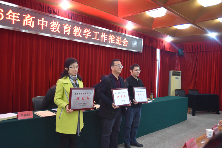 会上,对黄石二中、阳新一中、大冶实验高中、黄石女子艺术学校等12所教研教改促质量先进学校进行表彰。市教育局局长方晓阳与大冶市、阳新县教育局、黄石二中现场签订了2017年高中教育质量目标责任书。