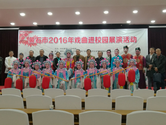 原市政协副主席孙中伟、市委宣传部副部长毕正洁、市教育局副局长周学君、市文新广局副局长胡欣荣、市文联副主席吕永超及财政局、团市委等部门的领导和相关人员参加了展演活动。各县(市)区教育局分管领导和部门负责人,直属学校分管领导和部门负责人,直属学校和城区中小学音乐老师,黄石二中部分师生参加了此次活动。黄石市2016年戏曲进校园活动将持续到12月底结束,在全市中小学将进行近600场戏曲演出、培训和辅导。将戏曲艺术融入到艺术教育,融入到校园文化建设,融入到学生综合素质的培养,旨在让学生近距离接触和了解中华传统文化,通过民族文化特色的艺术载体给学生们唱念欣赏、身段体验、表演互动、服饰文化、历史知识、道德教育等的传递,让学生感受中华国粹的精华,提高审美能力,培养高雅的审美情趣,进一步感受中华民族优秀文化的传统魅力。