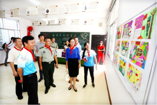 军旗猎猎,荣新校园阳光灿烂; 军歌嘹亮,莘莘学子梦想飞扬。 在这个阳光灿烂,特殊而又难忘的日子里,师生们穿着整齐的服装。黄石市国教办主任韩静同志,区委常委、湖北陆军预备役高射炮兵师第三团政委周承强同志,区人大副主任陈保英同志,区政协副主席陆震同志,以及预备役高炮三团、区教育局、区人防办和相关部门的主要负责同志参加了少年军校成立仪式。 市国教办主任韩静同志祝贺楠小少年军校成立,同时也对楠小小兵们提出了几点希望,要小兵们一定一点一点的做到,不辜负社会、老师、家长对他们的期望。 随后进行的军训成果汇报表演中,小兵们口令坚定有力。整齐的队列、矫健的步伐、敏捷的动作、昂扬的斗志无不给大家留下了深刻的印象。 最后,领导们参观了楠小的少年军校活动室,对孩子们自己办的国防军事手抄报赞不绝口。
