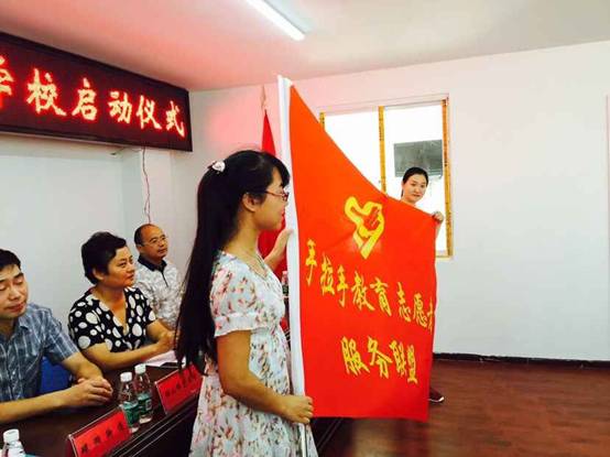 会上,新华书店向“四点半课堂”捐赠了书籍和玩教具,团市委向志愿者团队进行了授旗,市教育局向社区进行了授牌,家长代表与社区签订了安全、托管协议,学生和家长一起观摩了第一节课并聆听了家庭教育知识讲座。