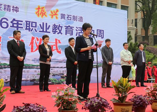 苏梅林副市长在启动仪式上发表讲话。她强调,当前我市提出生态立市、产业强市,加快建成鄂东特大城市发展战略,经济发展进入新常态,新的发展形势对职业教育发展提出新的更高要求。经济转型升级,振兴黄石制造,大众创业、万众创新,打造长江中游城市群,推进落实“四个全面”战略布局黄石实施和精准扶贫国家战略,这些都离不开职业教育。为此,职业教育要主动担责,主动作为,提质增效,深化改革创新,提升服务能力,为现代化大城市建设提供人才支撑。她要求,各地、各部门、各职业院校要把市政府加快发展现代职业教育的决策部署落到实处,确保到2020年建成黄石特色的现代职业教育体系。要大力弘扬工匠精神,为振兴黄石制造培养一大批具有工匠精神的技能人才。要以办好职业教育活动周为契机,通过举办一系列丰富多彩的活动,宣传职教政策、发展成果和先进典型,营造关心和支持职业教育的良好氛围。