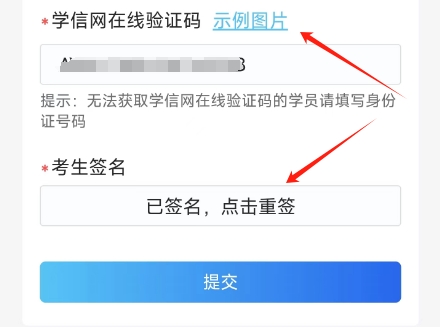填写学信网在线验证码,以便审核.点签字保存后,提交