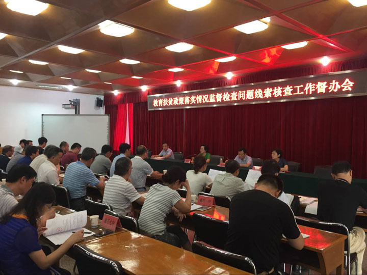 7月10日下午,教育精准扶贫政策落实情况监督检查问题线索核查工作督办会在市教育局9楼会议室召开, 各县(市)区教育局主要负责人和分管学生资助工作的领导,鄂东职教集团、各直属学校分管学生资助工作的领导和纪委(纪检...