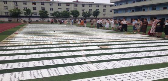 8月11日下午,黄石市铁山三小运动场呈现出一幅唯美的画面:60多本精美的《楷书千字文》册页,一本本地在运动场上依次排开,偌大的运动场瞬间成了书法作品的大展台。而册页的作者都是来自全市中小学爱好书法的教师,他...