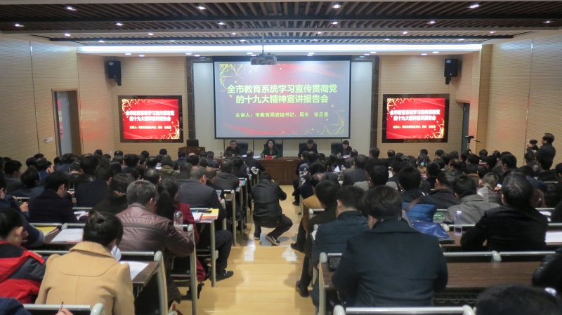 12月1日,市教育局在九楼会议室召开教育系统贯彻落实党的十九大精神宣讲报告会,邀请湖北师范大学政法学院院长周青山同志作题为“开启新时代中国特色社会主义新征程”宣讲报告,会议由市教育局党组书记、局长张足意主...