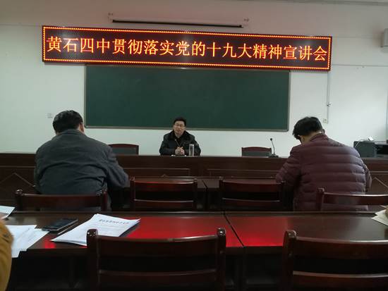 学习贯彻十九大精神,努力成为一名有故事的老师 ——市教育局赴黄石四中宣讲十九大精神 12月20日下午,市教育局徐可副局长来到黄石四中进行十九大精神主题宣讲。 徐可副局长首先与全体老师们一起温习了习总书记关于教...