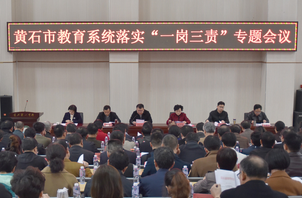 3月16日上午,全市教育系统落实“一岗三责”专题会议在黄石一中召开。会议由市教育局副局长徐可主持。市教育局党组书记、局长张足意作了工作报告。大冶市教育局,黄石港区教育局,黄石二中作了大会交流。 大冶市教育...