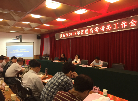 近日,市教育局召开我市2018年普通高考考务工作培训会,市教育局党组书记、局长张足意同志,市纪委派驻市教育局纪检组组长赵忠林同志,市教育局副局长肖惠东同志出席会议。大冶市、阳新县教育局、市(县)考试招生机构...